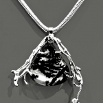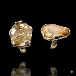 witgoud en geelgoud met aquamarijn, briljantjes, barokparel aan grijze parels